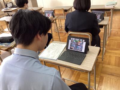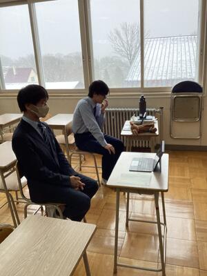 2月12日(木)の4校時に、本校2年生と標茶高校2年生で、オンラインによるプレゼン交流授業を実施しました。