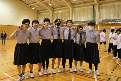 学年対抗でバレーや借り人競走、リレー等様々な競技を行いました。バレーでは、エキシビジョンマッチとして教職員チーム対生徒の対戦もあり、白熱した試合となりました。